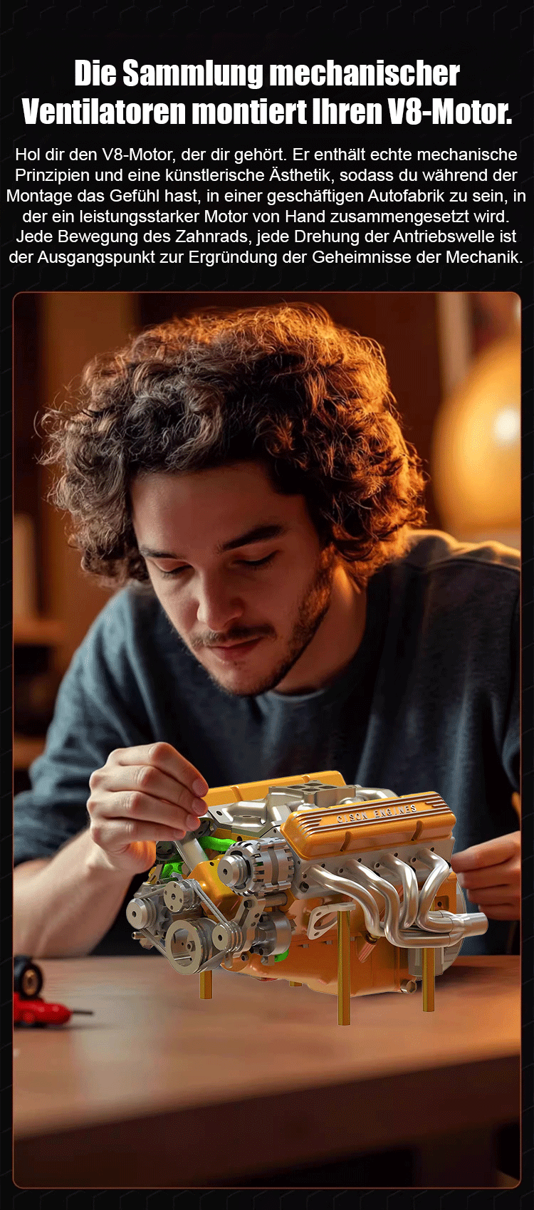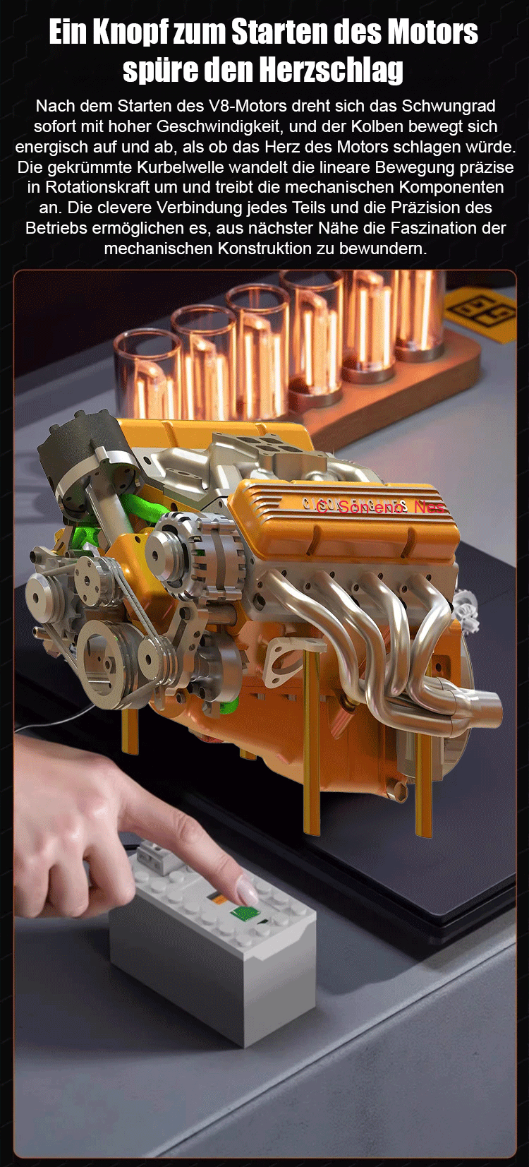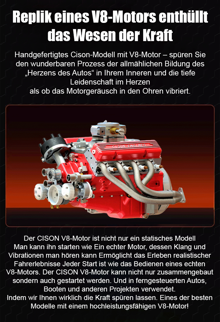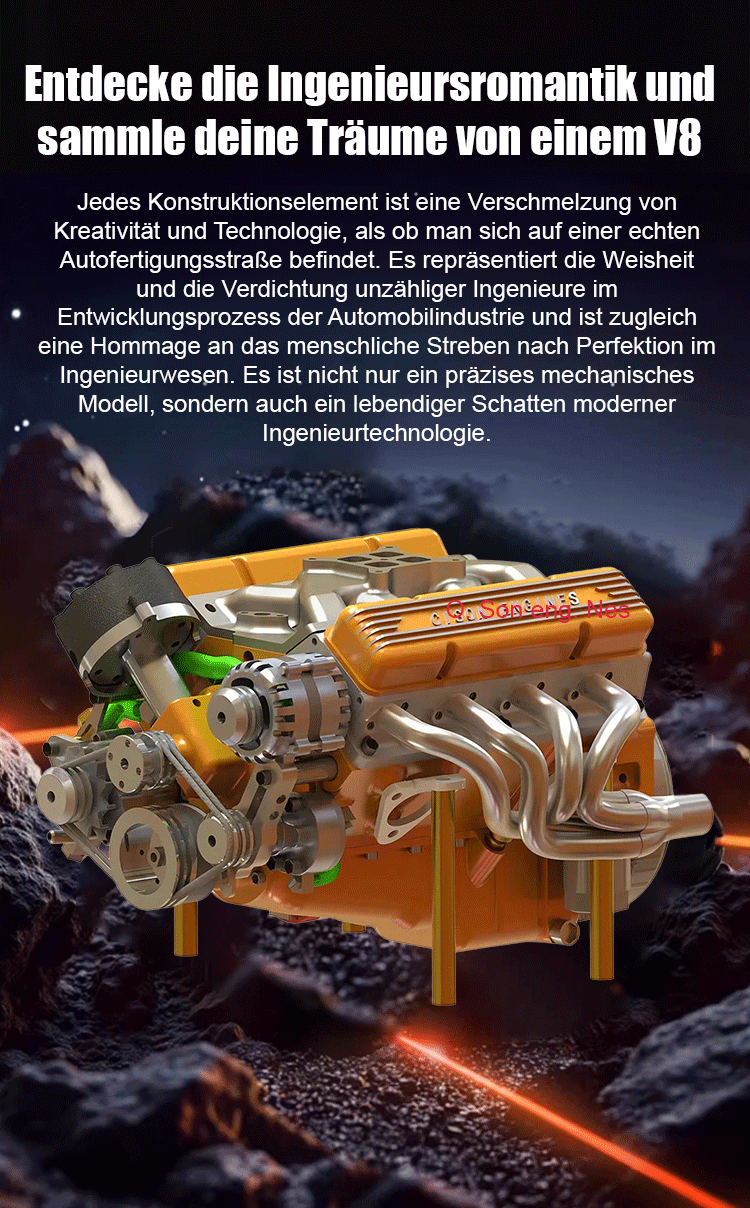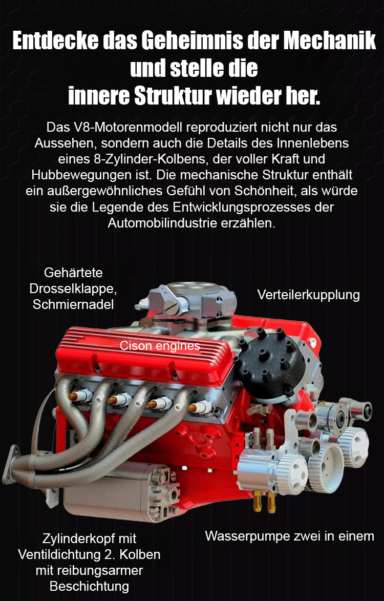 【100% funktionsgetreu】CNC-gfräst, benzinbetriibe, voll lauffähig: Neus V8-Motor-Modell.
