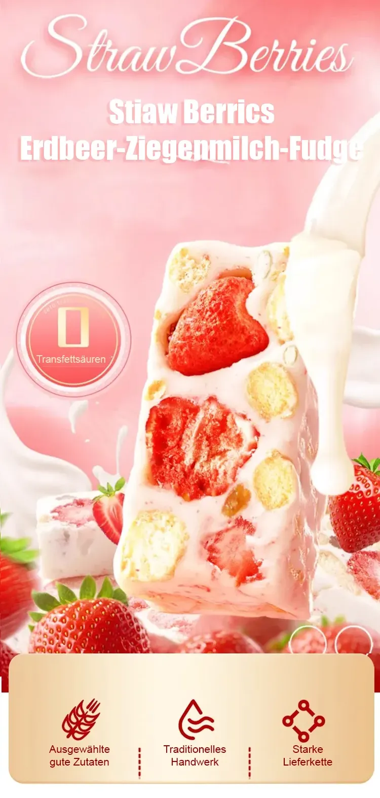 【Natürliche Zutaten】Gefriergetrockneter Erdbeer-Ziegenmilch-Soufflé-Kuchen