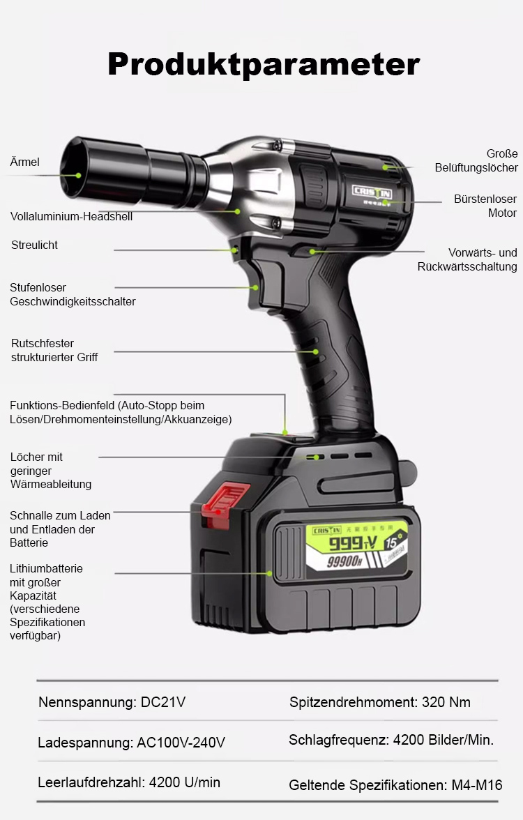 【Superkraft-Schraubenschlüssel】Elektrischer Lithium-Akku kabelloser Schraubenschlüssel
