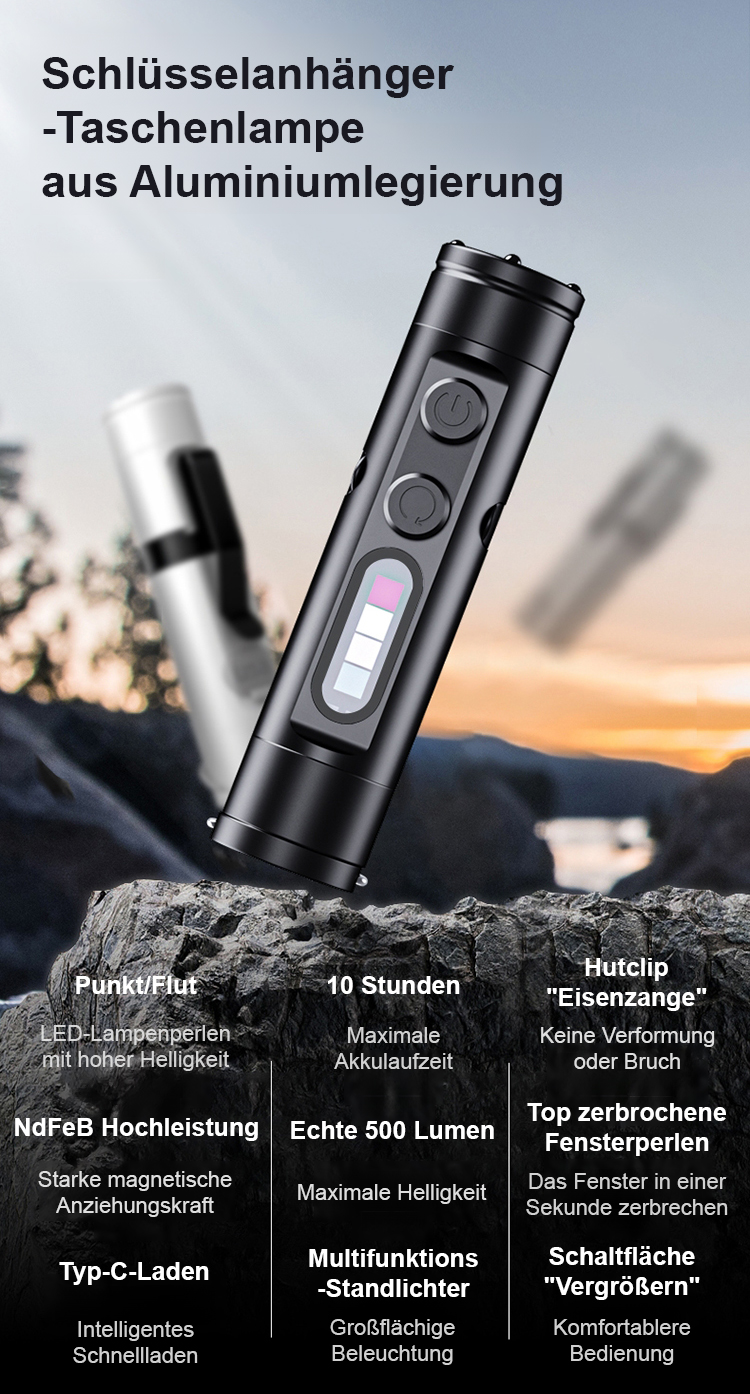 【Taschenlampe + Feuerzeug + Fensterbrecher】Schlüsselanhänger starker Licht aufladbare Mini-Taschenlampe