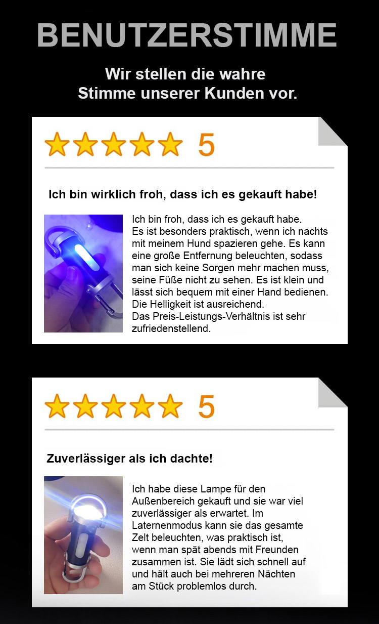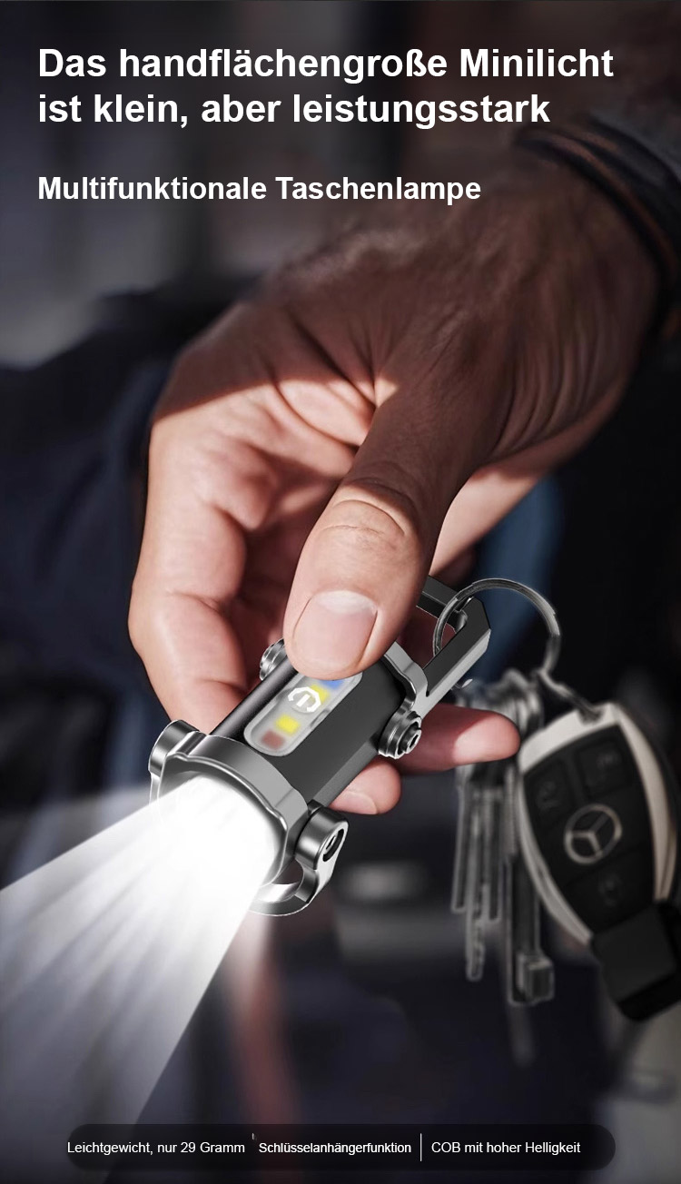 【SOS Notfalllampe + Taschenlampe + Powerbank】Mini-Taschenlampe als Schlüsselanhänger, fünf Helligkeitsstufen