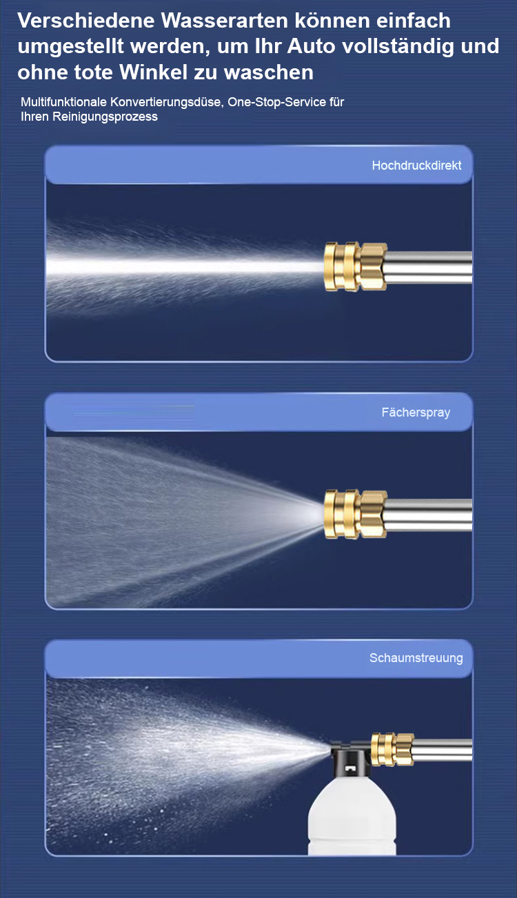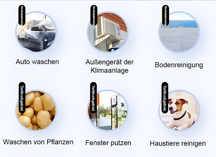 Kein Stromkabel oder Verkabelung erforderlich – funktioniert überall, wo Wasser verfügbar ist. 2800 W leistungsstarker Wasserdruck erreicht sofort eine Reichweite von 20 Metern.